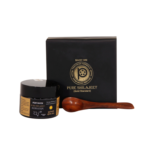 Shilajeet, a Herbo-mineral compound, used in various Ayurvedic medicine from ancient times. It is a mineral deposit like-resin that is pressed out from layers of rock found in the sacred himalayas. Pure Shilajeet (Gold st.) by Pentavox Herbals derived from well controlled Surya-Tapi Vidhi, am ancient Sun drying process of extracting pure shilajeet resin from the rare himalayan shilajeet rock/stone hand collected from Him-tribal people from snow clad himalayan hills at about 16000 - 18000 ft above sea level. It is a anti-aging purified ayurvedic elixir developed with the help of modern scientists and ayurvedic vaidyas for rejuvenation and virility. Shilajeet has a host of natural vitamins, minerals, trace elements along with Humic acid and Fulvic acid. It is said to increase energy levels, boost heart health, help with iron deficiency, fatigue and so much more. We use the most ancient method of extraction and purification as described in the Vedas; The Surya tapi method~ Raw Shilajeet rock is first washed and dissolved in cow’s milk. Then the solution is filtered and placed in bright Sun light, in a pollution free environment, while the material filters and purifies itself. The process of filtration is repeated again untill our vaidyas and ayurvedic experts are satisfied that they have extracted and collected the best exudate from the raw shilajeet rock. We then add the purified Shilajeet cream into a decoction of three powerful ayurvedic herbs for further purification. This Sun drying process of Shilajeet is continued for months (90 days). Finally the collected thick Shilajeet cream is kept in Sun again. This extensive sun drying purification process for developing the Pure Shilajeet is known as Surya-Tapi Vidhi. Exported worldwide from the last 30 years. A must have and a most potent immunity tonic.